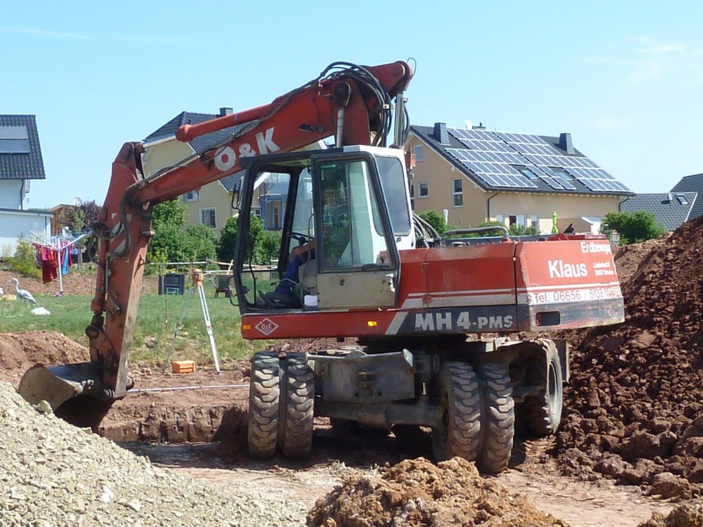 Orenstein & Koppel MH 4 PMS arbeitet auf einer Hausbaustelle in 36100 Petersberg-Marbach, Mai 2011