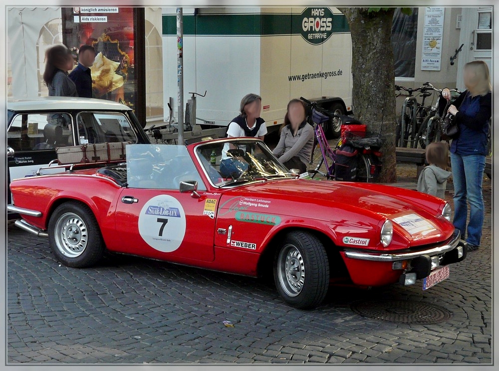 Triumph 1500 Spitfire Bj 1975, hat die Internationalen Saar-Lor-Lux Classique Rundfahrt gut ünerstanden, aufgenommen am 28.05.2011 in Saarbrücken.