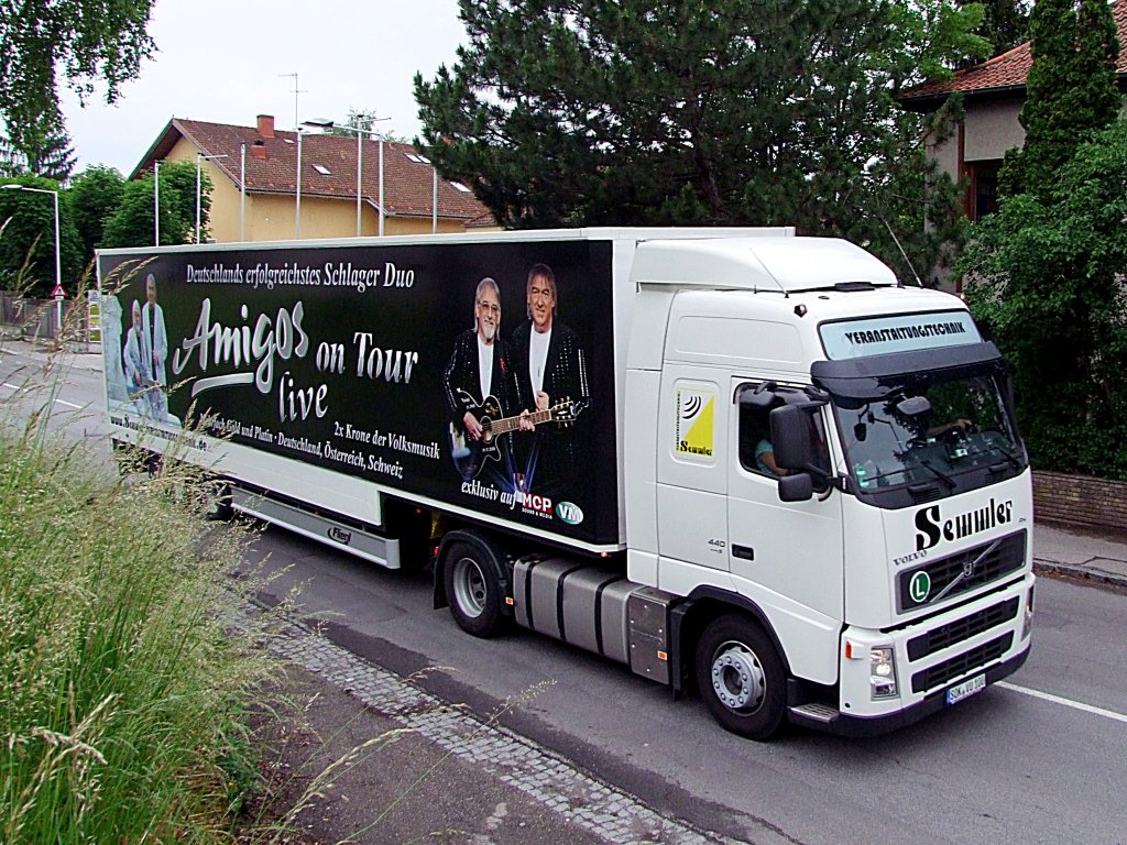 VOLVO FH440 mit Auflieger "Amigos-on-Tour" erspähte ich rein zufällig, und gerade noch am Weg zu ihrem nächsten Auftritt nach Gmunden;110602