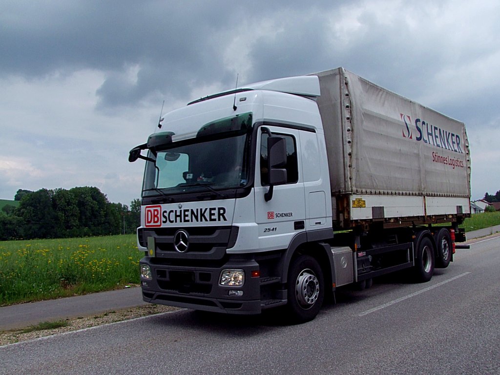 ACTROS 2541 von DB-Schenker mit Wechselaufbau, welcher auch für Bahntransport zugelassen ist;110609