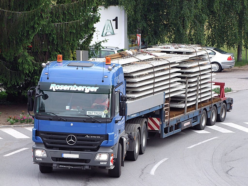 ACTROS 2848 aus dem Landkreis Freyung bringt Betonfertigteile zu einer Baustelle in Österreich;110610