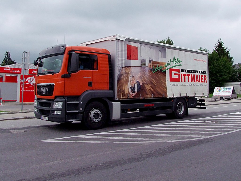 MAN TGS18.320 eines Holzhandelsbetrieb auf Zustelltour;110614