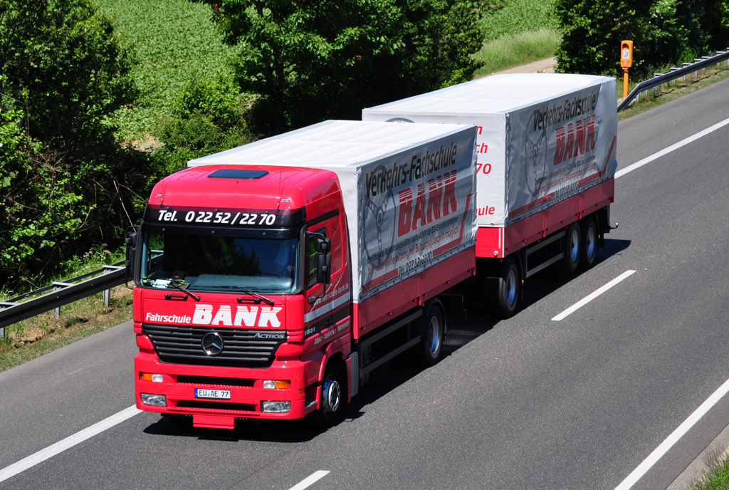 MB Actros 1831 "Fahrschule Bank" auf der A61 bei Weilerswist - 25.05.2011