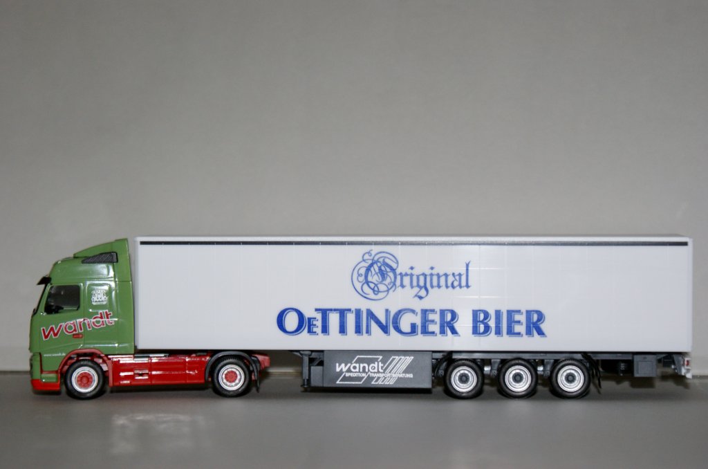 Volvo FH Gl Gardinenplanen-Sattelzug "Wandt/Oettinger Bier" von Herpa