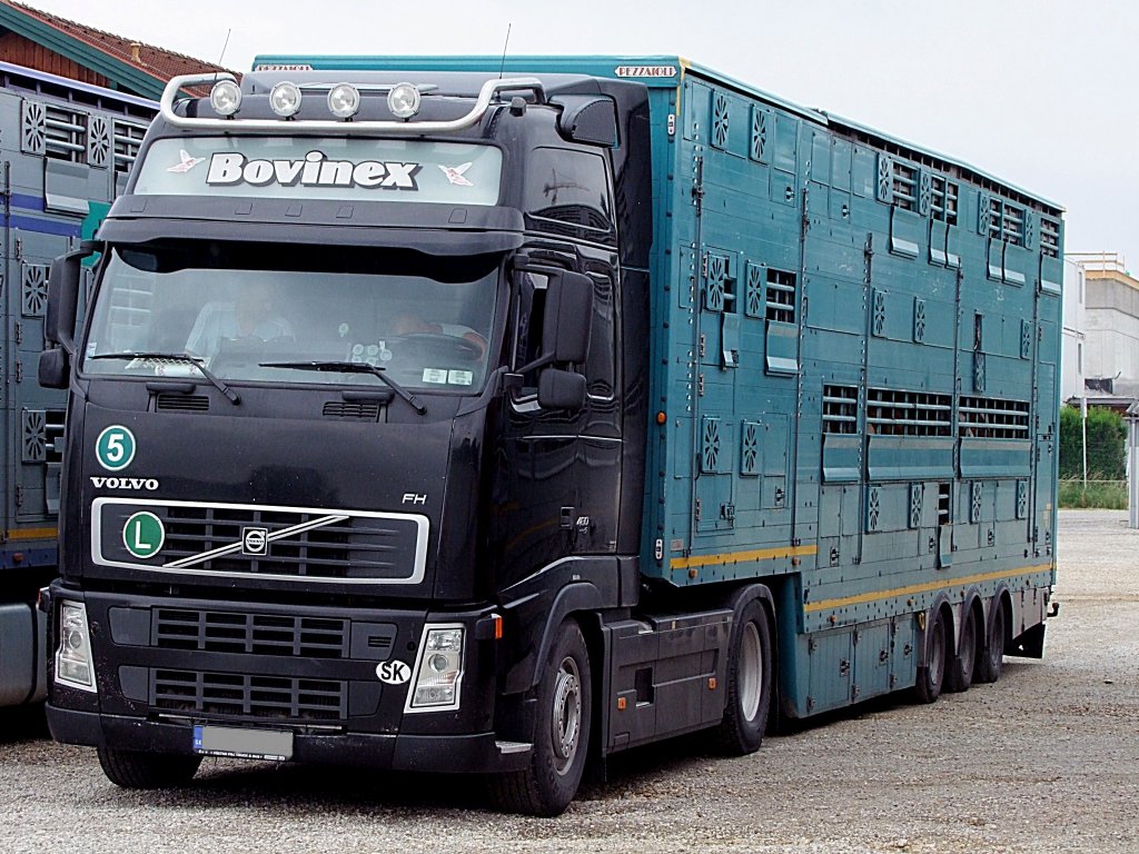 VOLVO FH-480 steht mit Zuchtrindern beladen, zur Abfahrt in die Türkei bereit;110609