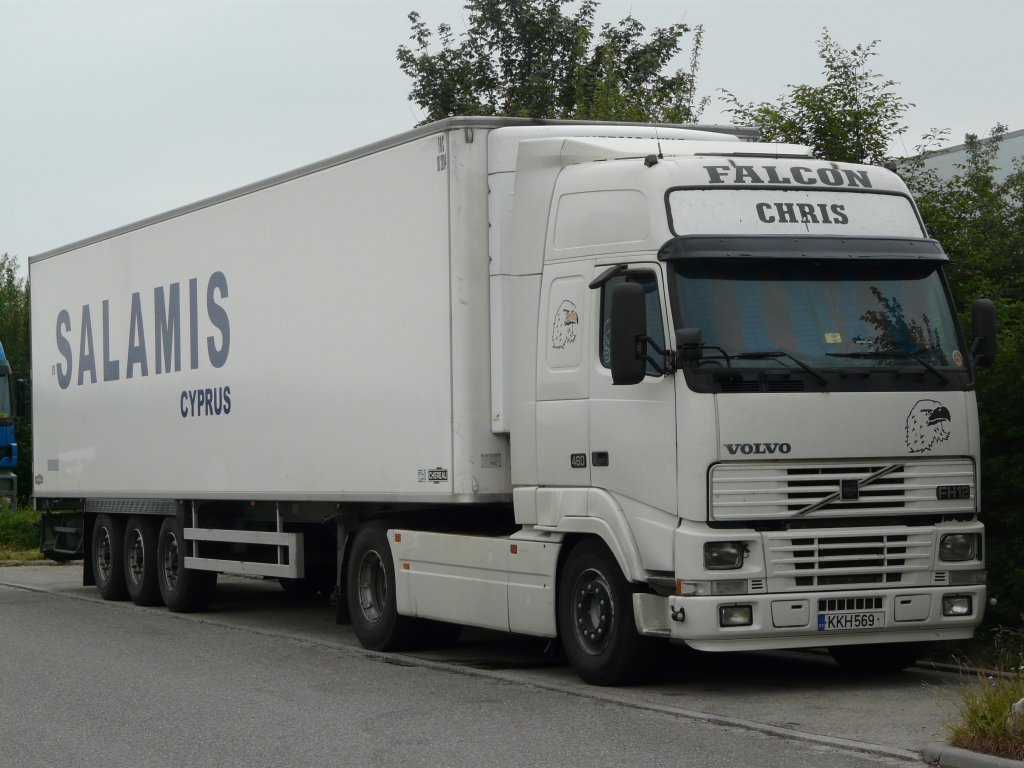 Volvo FH12 460 mit Kühlauflieger "Salamis" aus Zypern in einem Industriegebiet in Hilpoltstein, 02.06.2011