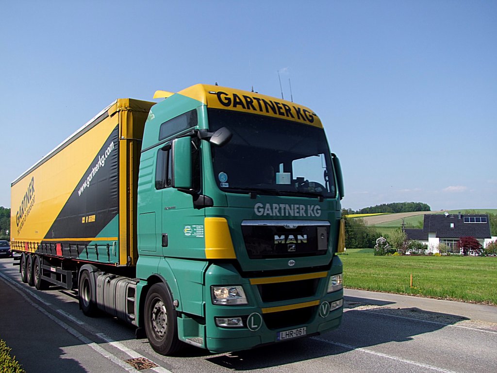 MAN TGX18.440 der Sped.Gartner nutzt die Bundesstraße in Richtung Betriebszentrale;110505