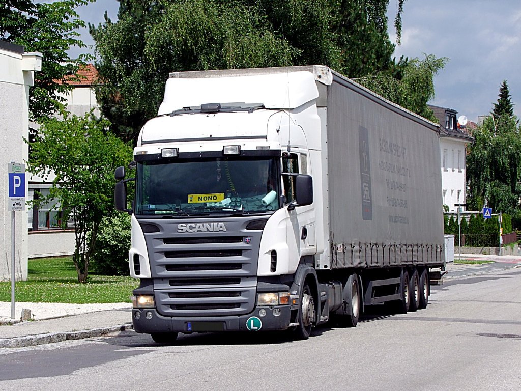 SCANIA-Sattelzug aus Ungarn ist in Ried auf Parkplatzsuche;110624