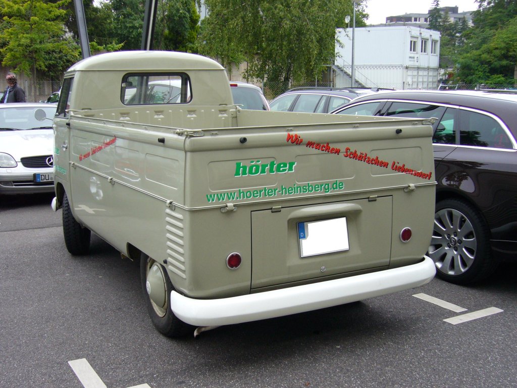 VW T1 Pritschenwagen, der Baujahre 1960 -1964. In diesen Modelljahren leistete der 4-Zylinderboxermotor mit 1.192 cm³ bereits 34 PS. Der abgelichtete T1 entstammt dem Baujahr 1961. Besucherparkplatz des Düsseldorfer Meilenwerkes am 26.06.2011.