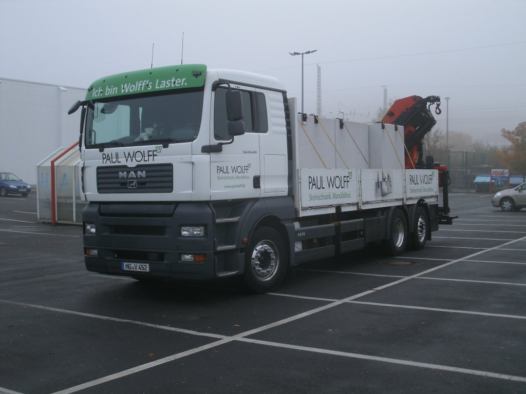 MAN TGA33.480 kehrt bei tristem Herbstwetter, und nach erfolgter Zustellung wieder Richtung Lagerhaus zurück;101108