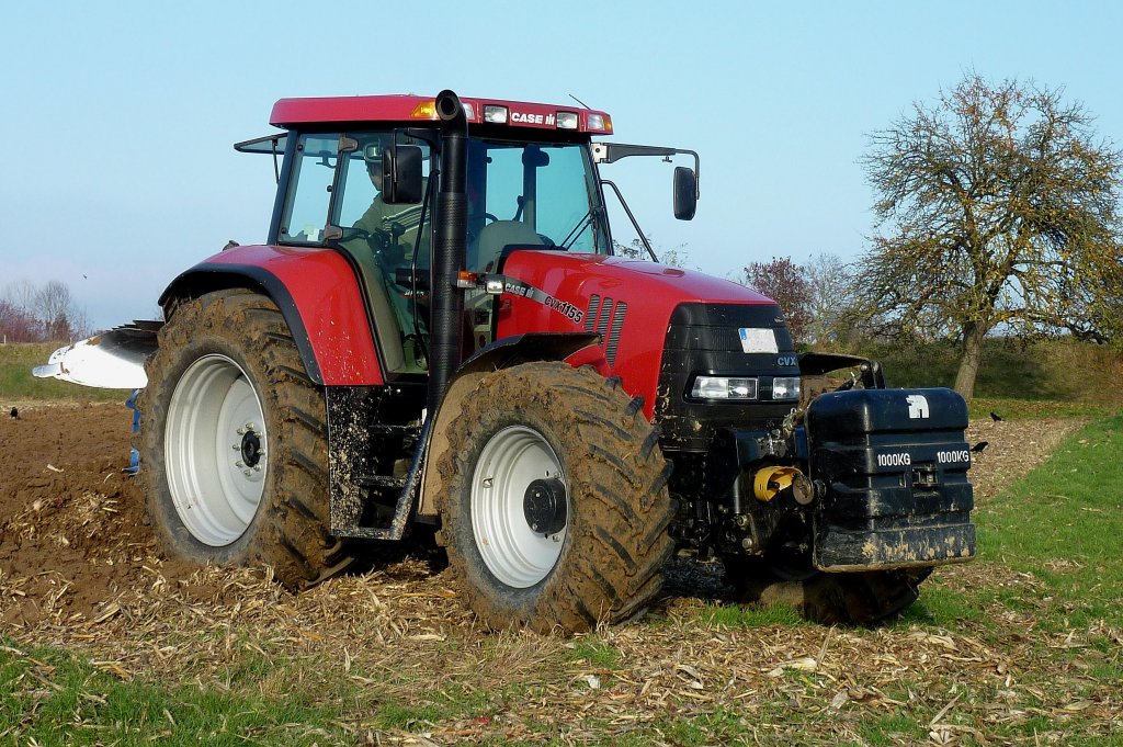 Case CVX1155 mit angebautem 5-Schar-Wendepflug, der Allradschlepper hat 155PS, Nov.2011