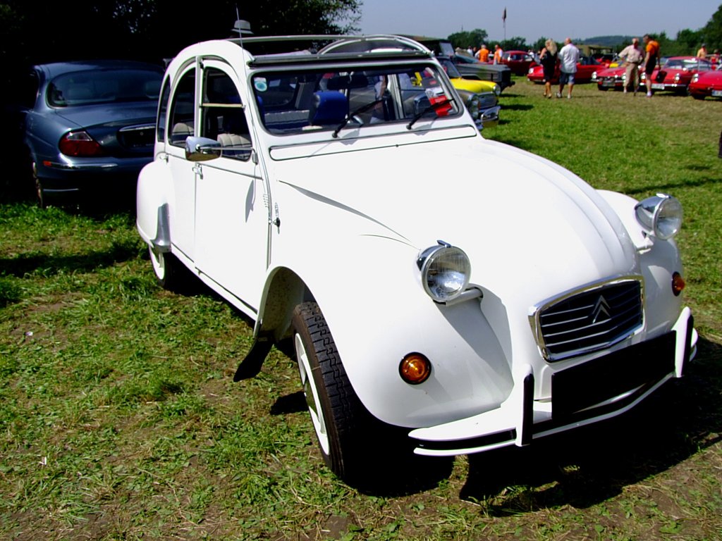 Citroen 2CV mit Faltdach nimmt in Meggenhofen an der Oldtimerausstellung teil; 110821