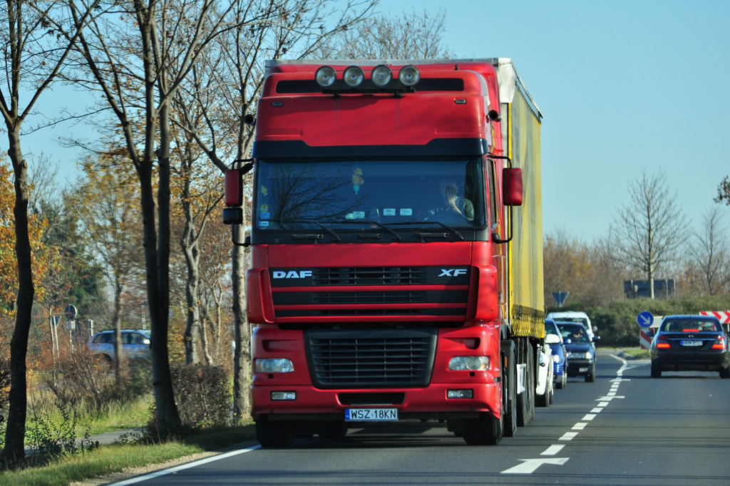 DAF XF mit Pritschenauflieger aus Polen bei Euskirchen - 09.11.2011