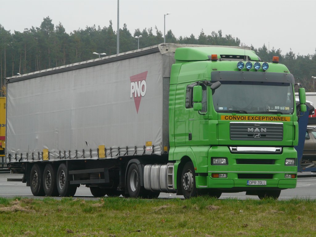 MAN TGA 18.390 mit Auflieger von PNO auf der Rastanlage "Kammersteiner Land" an der A6, 11.11.2011