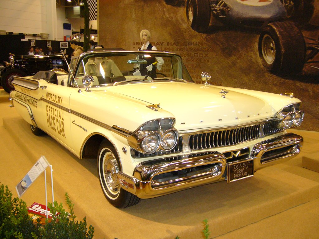 Mercury Turnpike Cruiser Convertible von 1957. Die Modellreihe Turnpike Cruiser war das Topmodell des 1957´er Mercury Modelljahres. Der V8-Motor stammte von der Lincoln-Division im Ford Konzern und leistete 290 PS aus 6.027 cm³ Hubraum. Vom Convertible (Cabrio) wurden 1.265 Einheiten zum Preis von US$ 4.103,00 abgesetzt. Der abgelichtete Wagen war das Pacecar der 500 Meilen von Indianapolis im Jahr 1957. Essen Motor Show am 29.11.2011.