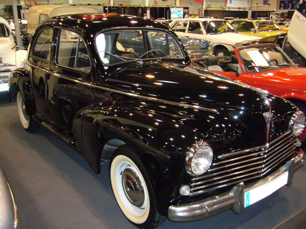 Peugeot 203 Limousine. Der 203 war Peugeot´s erste Neuentwicklung nach dem 2. Weltkrieg. Er wurde von 1949 - 1960 produziert. Der 4-Zylinderreihenmotor hat 1.290 cm³ Hubraum und hatte 42 PS. Lediglich die Lieferwagenmodelle U4 leisteten durch die Bestückung mit einem Zenith 32IM Vergaser 45 PS. Es wurden fast 686.000 Einheiten produziert. Essen Motorshow am 29.11.2011.
