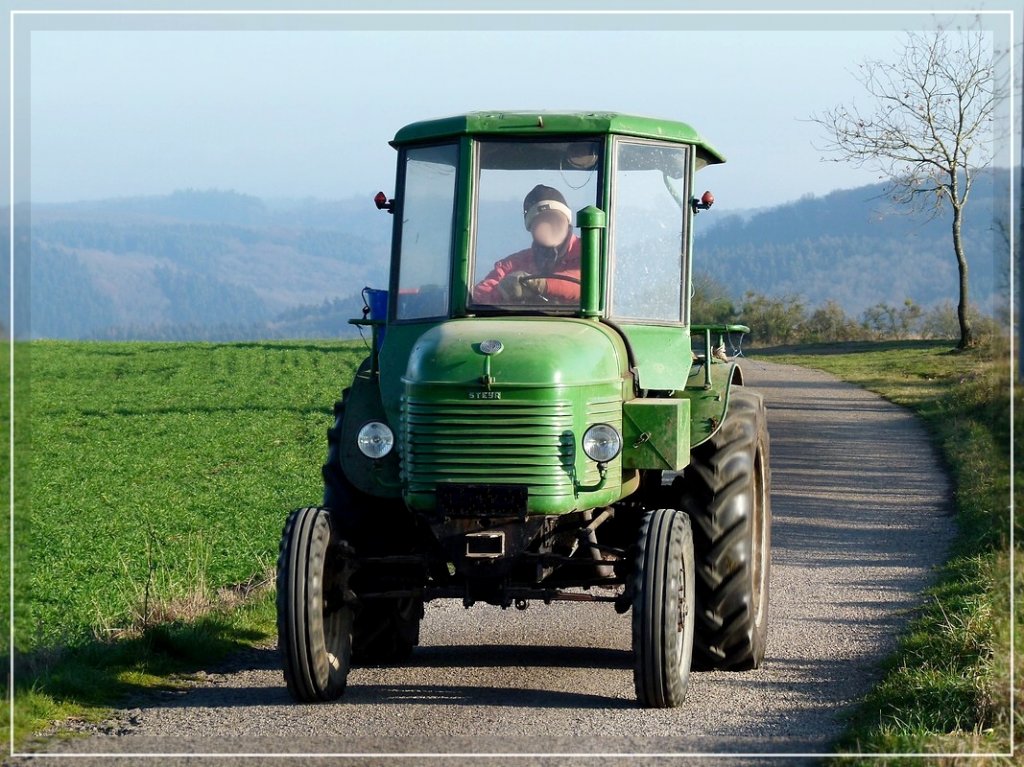 Steyr Traktor 1, gebaut zu beginn der 50ziger Jahre, dabei laut Besitzer, noch fast täglich im Einsatz, aufgenommen bei einem Spaziergang am 14.11.2011