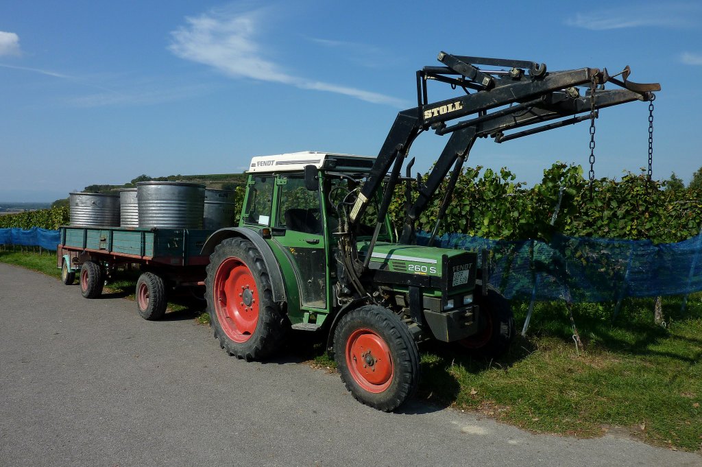 Fendt 260S mit Frontlader bei der Weinlese am Tuniberg, 3-Zyl.Diesel von Deutz mit 3064ccm und 60PS, wurde gebaut von 1987-2002, Sept.2011
