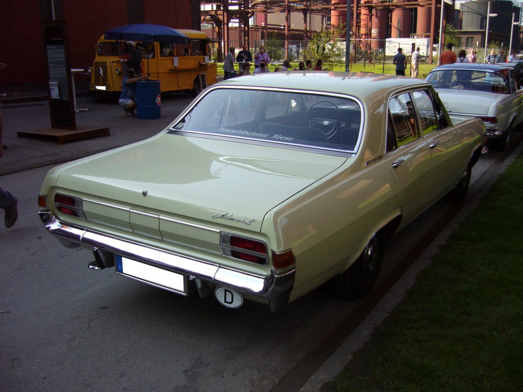 Opel Admiral A. 1964 - 1968. Der Admiral war das "mittlere" und meistverkaufteste Modell der sogenannten KAD (Kapitän, Admiral, Diplomat) Baureihe. Von den 89.277 produzierten Wagen entfielen 55.876 auf den Admiral. Als Motorisierung diente ein 6-Zylinderreihenmotor bzw. wahlweise ab 1965 auch ein 4.6l V8-Chevrolet Triebwerk. Der abgelichtete Wagen müßte vor 1967 gebaut worden sein, da er noch keine seitliche Zierleiste trägt. Oldtimertreffen Kokerei Zollverein am 02.10.2011.