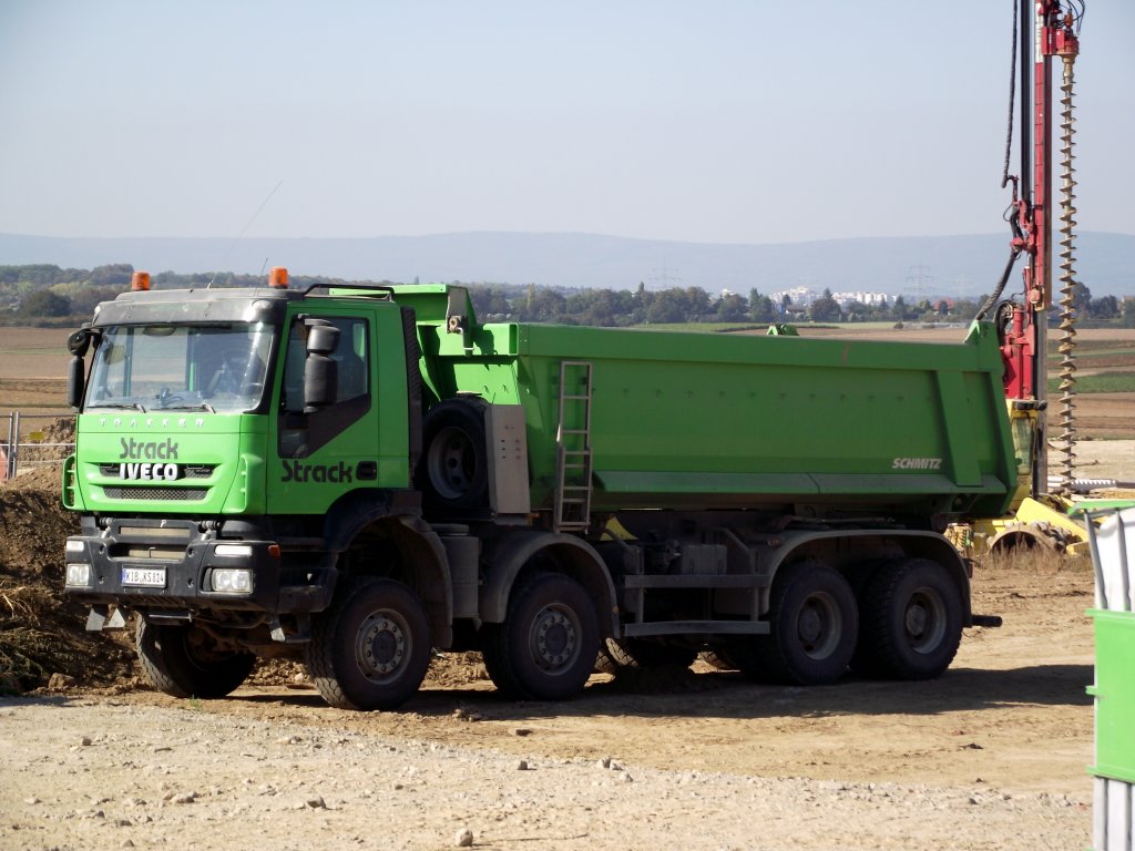MAN TGS mit Raupenkipper beladen am 08.10.11 in Heidelberg ganz oben im Hintergrund ist eine Antenne und ein Haus gerade. Verstehe nicht warum die anderen Häuser schief sind.