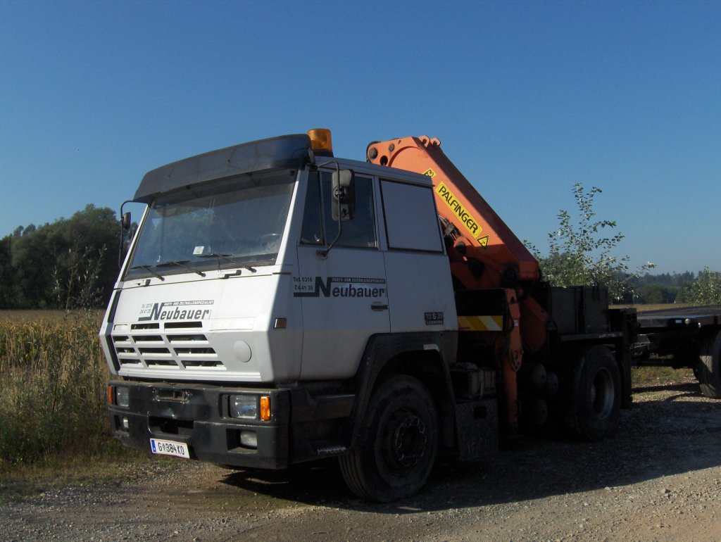 Noch immer fleißig im Einsatz! Steyr 19S39 V8 als 2-achsige SZM mit Kran in Weitendorf am 11.9.2011
