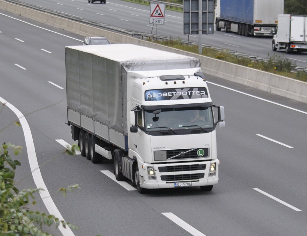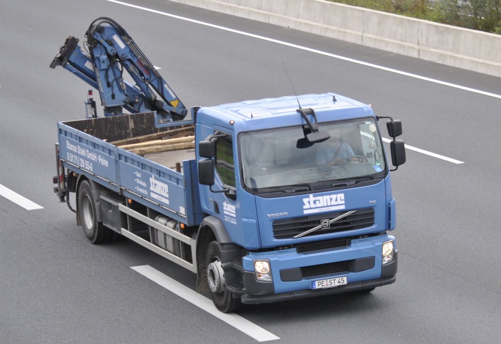 Volwo LKW mit Ladekran auf der A2 bei Lehrte am 15.09.2011.