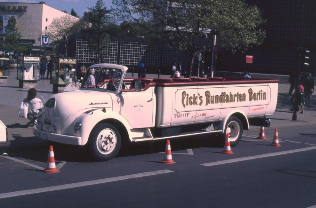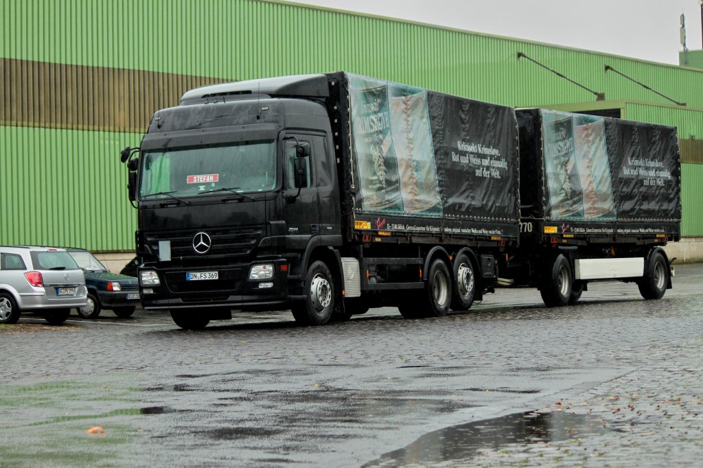 Auf dem Weg zum Bahnhof war dieser Mercedes-Kipper noch leer,am 22.Oktober 2011,in Bergen/Rügen.