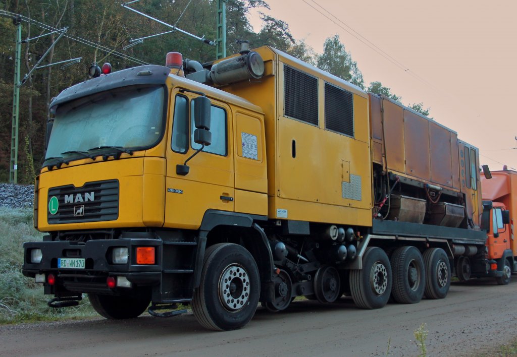 MAN 26.364 Zweiwegefahrzeug mit Schienenschleifaufbau am 21.10.2011 am Aachener Buschtunnel.