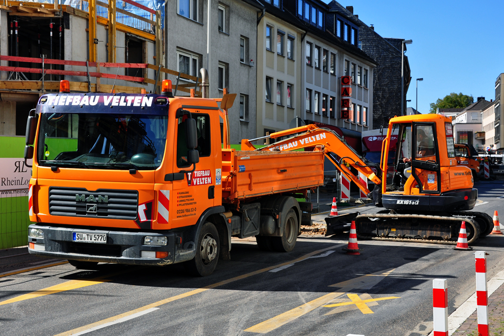 MAN Kipper und Kleinbagger KX-161-3 auf einer Baustelle in Bonn - 14.09.2011