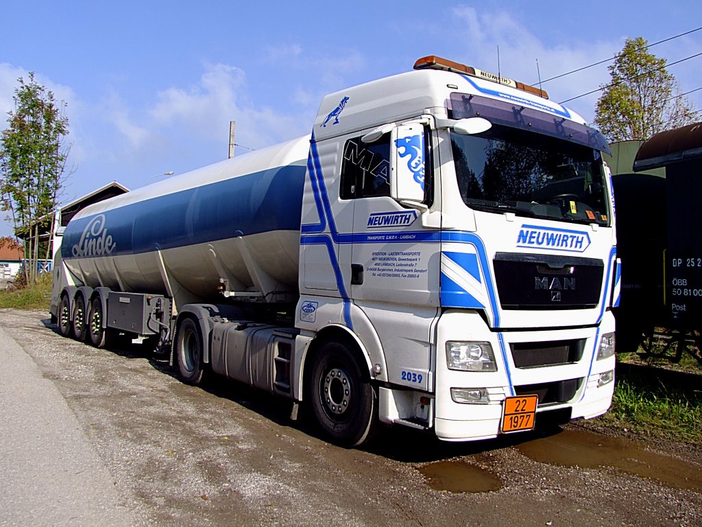 MAN mit Tanksattelauflieger, in welchem sich lt. Gefahrentafel, tiefgekühlter flüssiger Stickstoff befindet; 111022