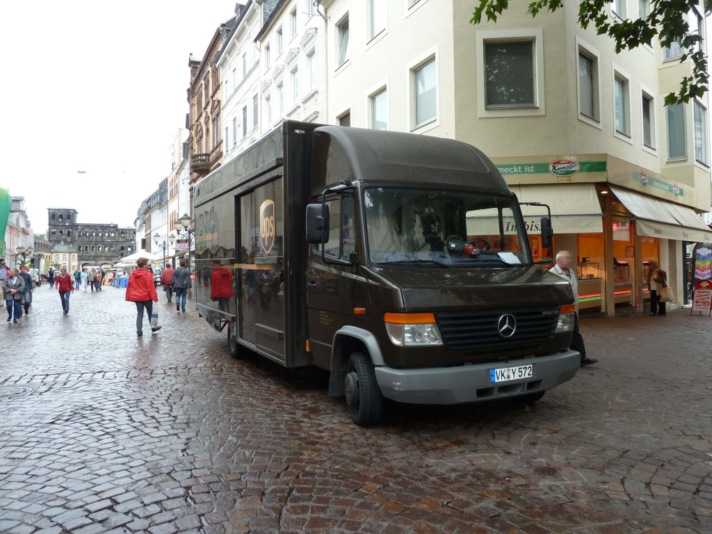 Auslieferungsfahrzeug von UPS steht in der Nähe der Porta Nigra in Trier, September 2011