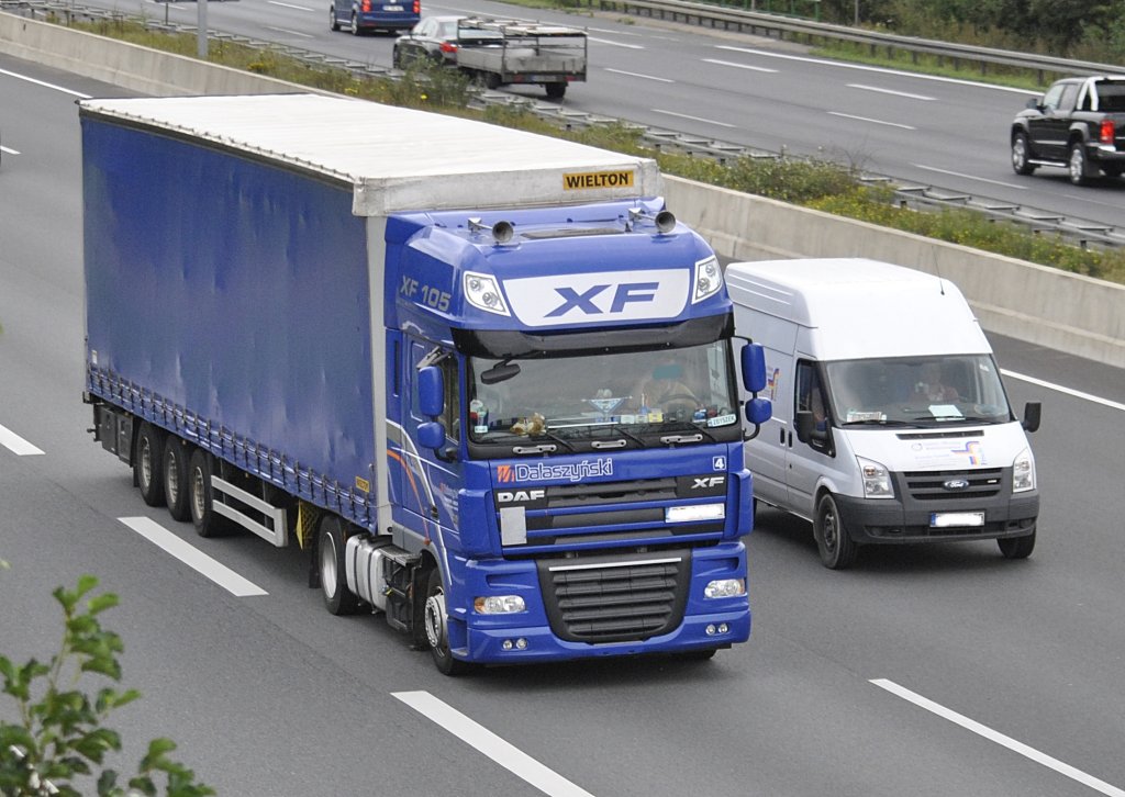 Ein DAF CF Tandemhängerzug wird am 20.09.2011 auf der A4 hinter dem Autobahnkreuz Aachen von einem Can-Am Spyder Roadster Touring überholt. Das Dreirad wird von der Kanadischen Firma Bambardier Recrational Products gebaut. Mit einem 100PS Aprilia-Motor beschleunigt es von 0 auf 100 km/h in 5,5 Sekunden, die Höchstgeschwindigkeit ist 160 km/h, geschaltet wird per 5 Gang Fußschaltung. Die Preise für das sportlichen Spaßgerät beginnen bei 21 369 Euro.