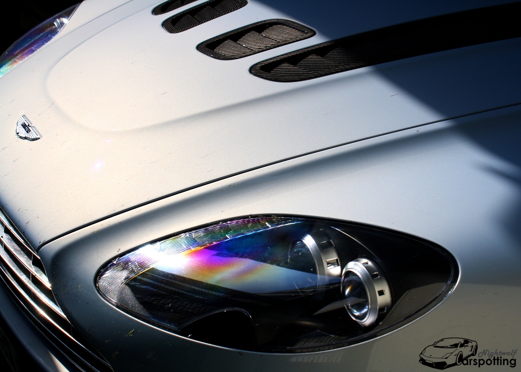 Detailshot eines Aston Martin V12 Vantage. Fotografiert in einem Parkhaus in Frankfurt am Main (24.9.2011)