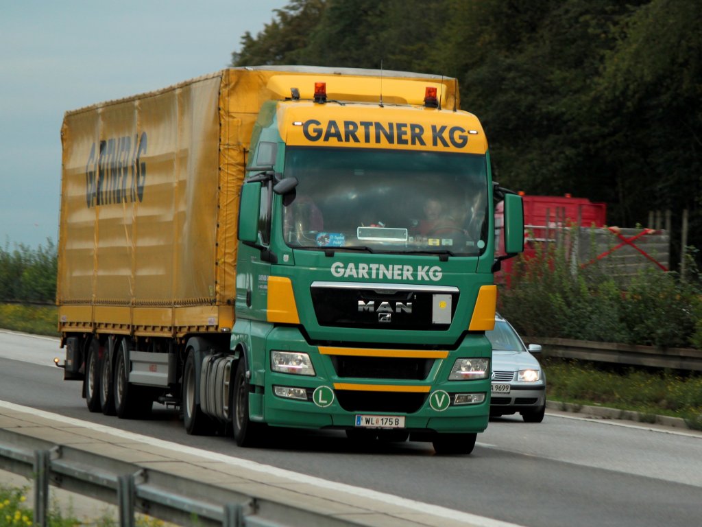MAN mit Sattelauflieger am 20.09.2011 auf der A4 kurz hinter dem Aachener Kreuz in Richtung Niederlande.