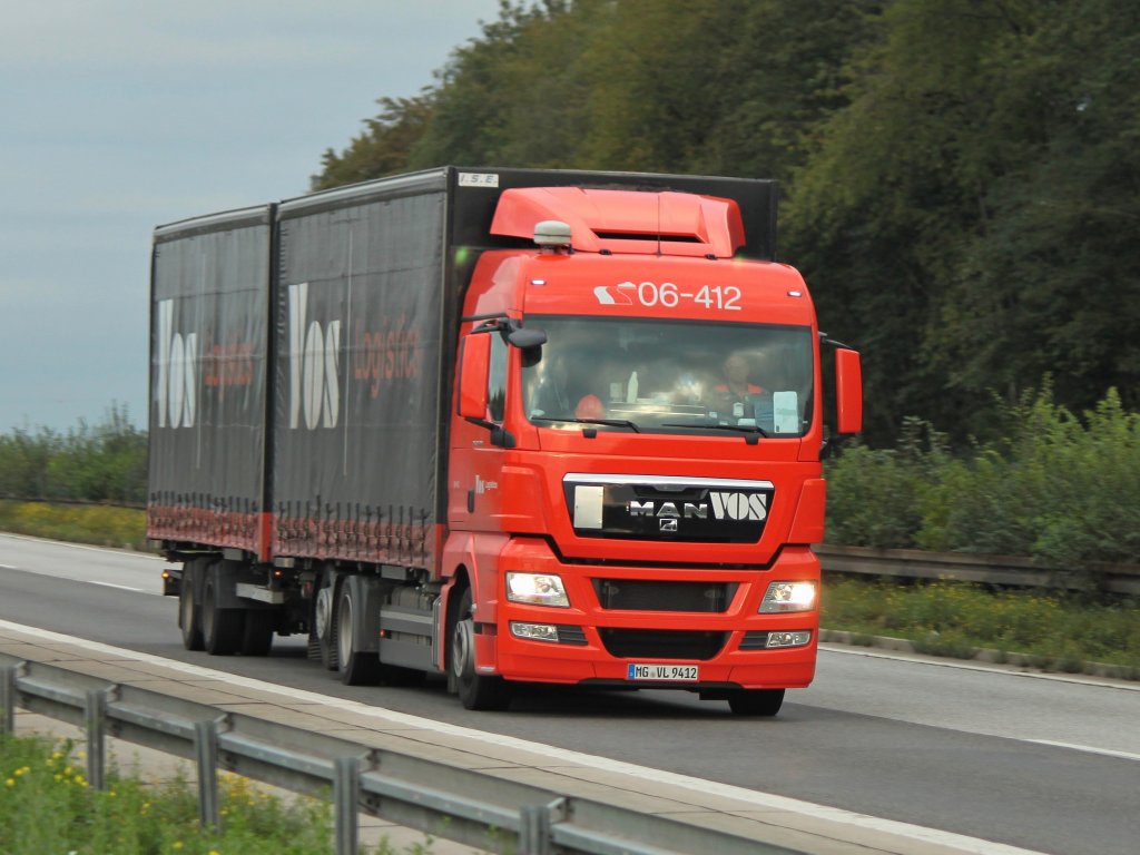 MAN Tandemhängerzug am 20.09.2011 auf der A4 kurz hinter dem Aachener Kreuz in Richtung Niederlande.