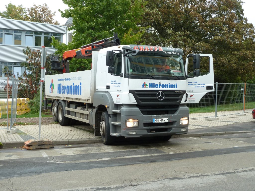MB Axor 2536 des Baustoffhändlers "HIERONIMI" unterwegs in Trier, September 2011