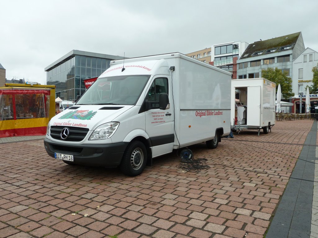 MB Sprinter als Verkaufswagen einer Landbäckerei auf dem Marktplatz von Trier, September 2011