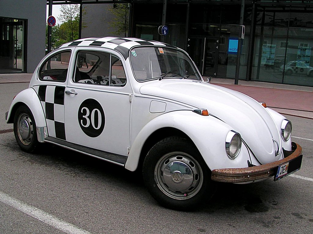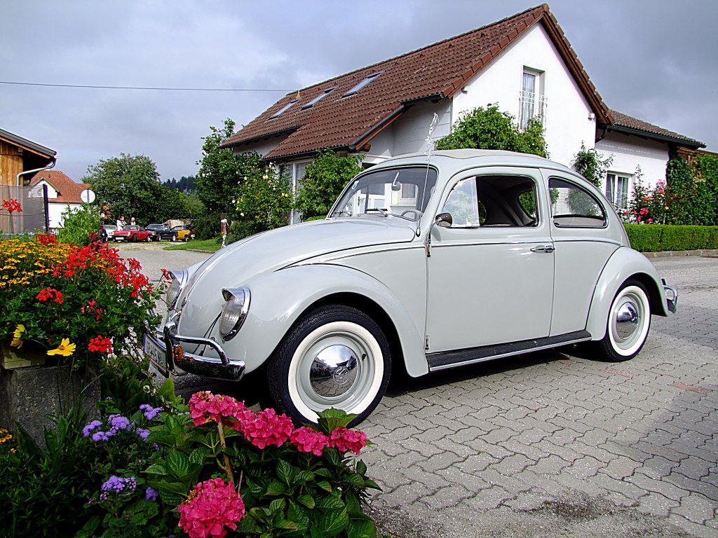 VW-Käfer nutzt einen blühenden Parkplatz;110731