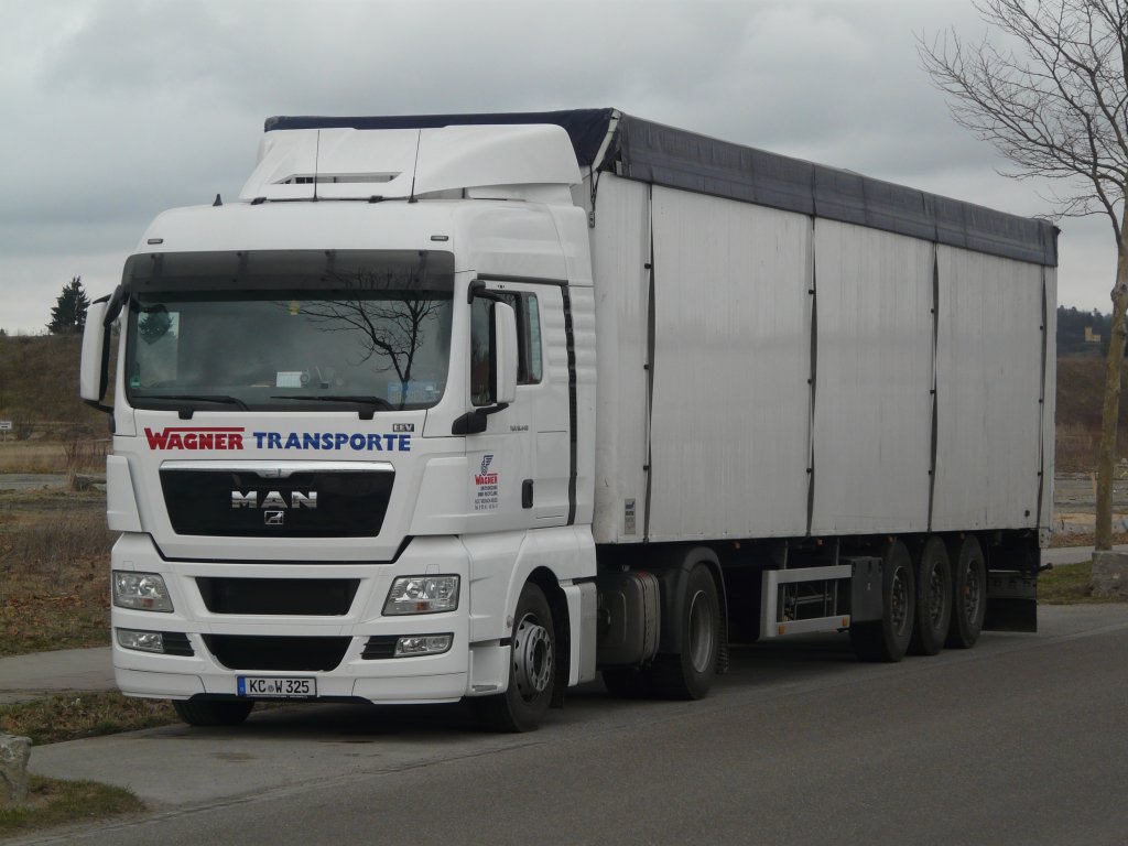 MAN TGX 18.440 mit Schubbodenauflieger von Wagner Transporte abgestellt in Crailsheim, 18.03.2012