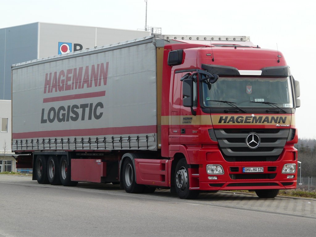 MB Actros 1844 MP3 von "Hagemann" abgestellt in einem Industriegebiet in Ellwangen, 18.03.2012