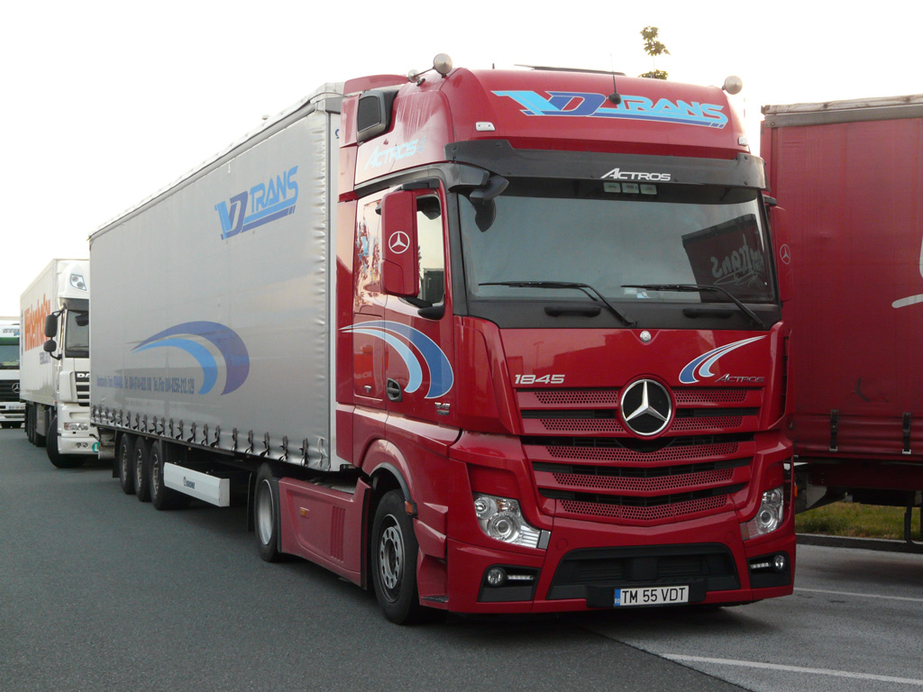 MB Actros 1845 von "VD Trans" aus Rumänien auf der Rastanlage Nürnberg/Feucht, 07.06.2012