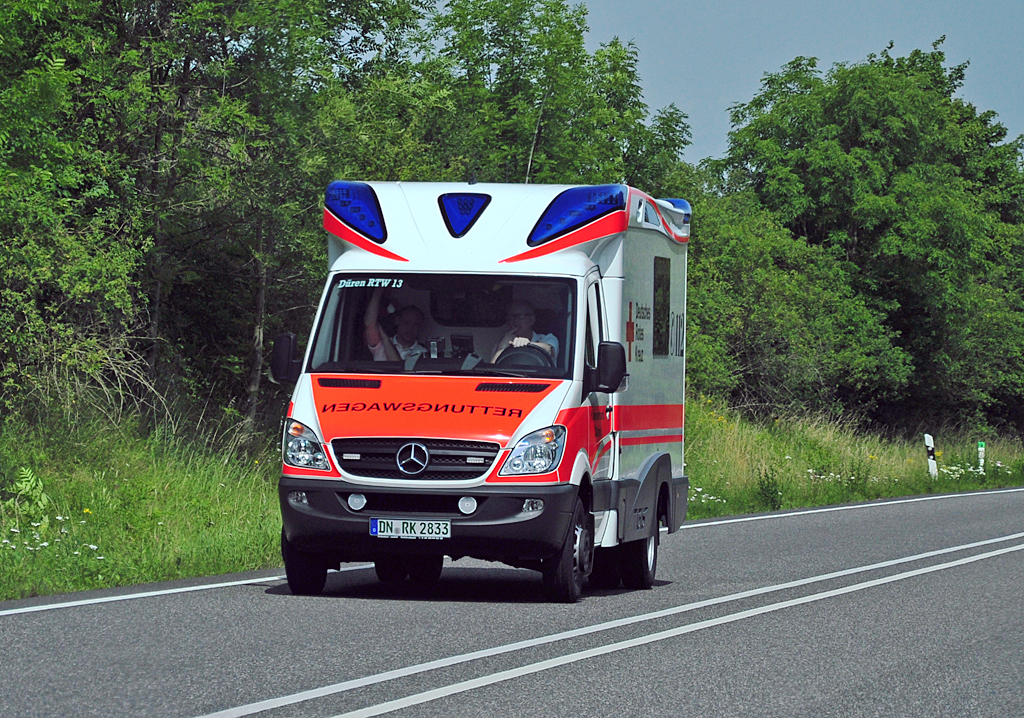 Dieser Mercedes RTW,von der Rettungswache Kluis,befand sich,am 09.August 2012,nicht im Einsatz,so das ich Diesen in Bergen/Rügen antraff.