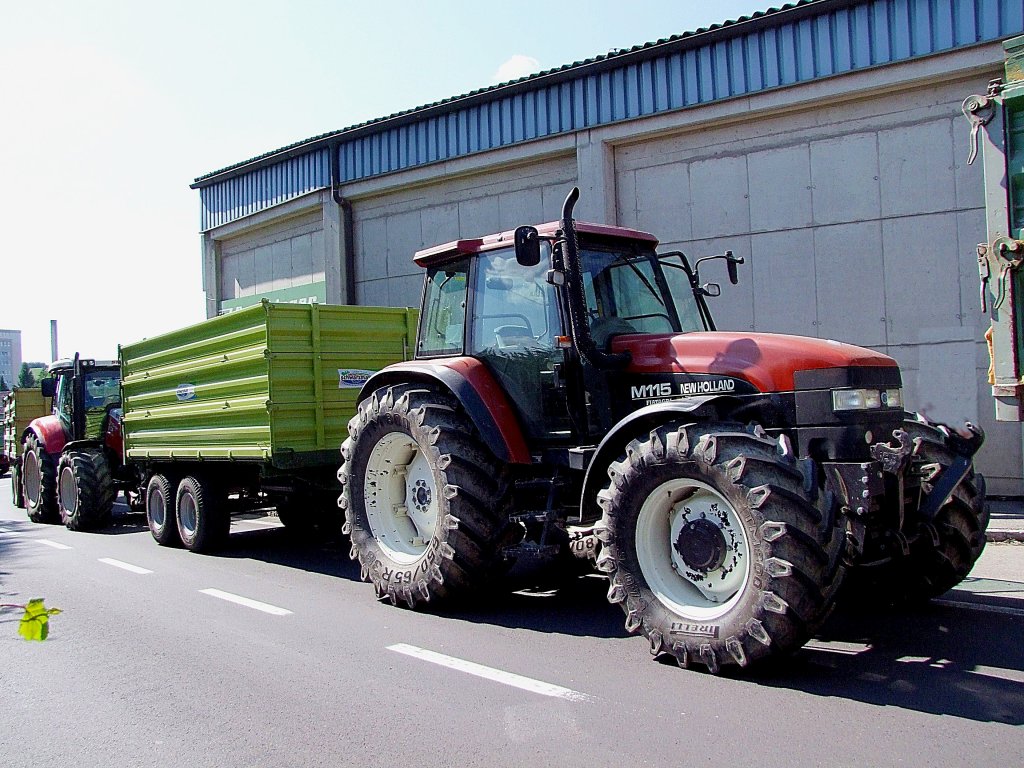 NewHolland M115-Fiatagri bringt eine Ladung Raps zum Lagerhaus; 110727