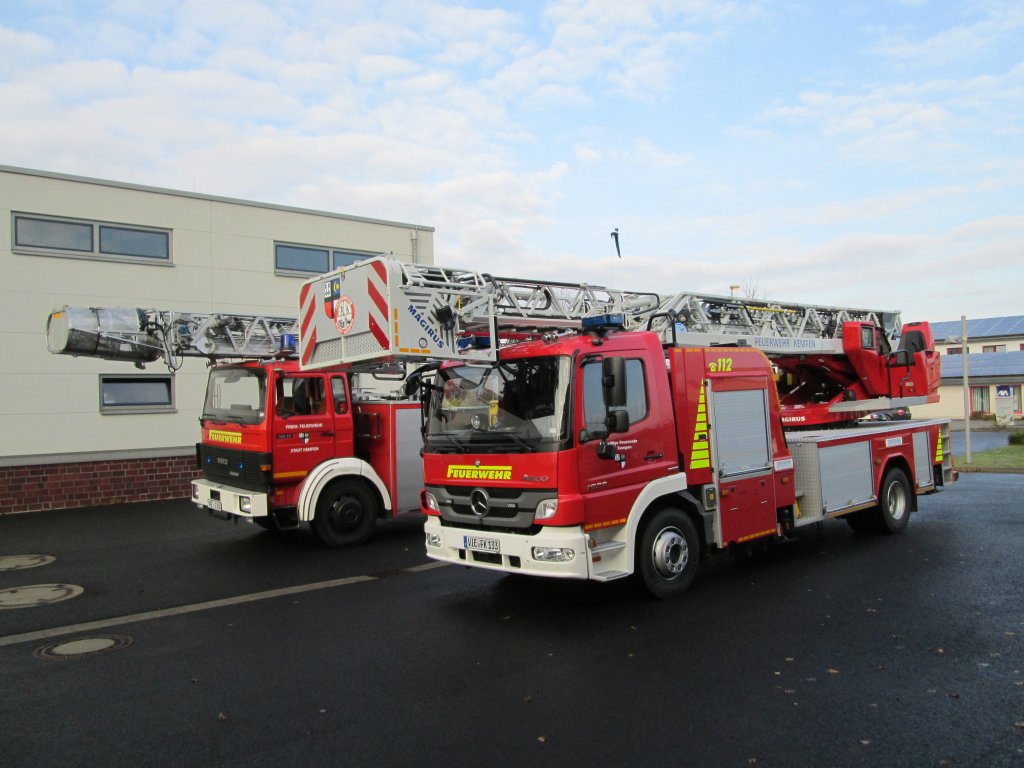 ie neue Drehleiter mit Korb DLK (A) 23-12 (M 32 L-AT) der Freiwilligen Feuerwehr Kempen, Löschzug Kempen. Fahrgestell: Mercedes Benz Atego 1529 F Aufbau: Magirus Abstützung: Magirus-Vario-Abstützung Magirus Abstützsicherheitssystem mit Bodendrucküberwachung Abstützbreite: 2.400 mm bis 4.500 mm Variable Abstützbreite, jede Stütze einzeln steuerbar Leiterstuhl und Leitersatz: Leiterstuhl mit Niveauregulierung bis zu 10° Leitersatz mit Arbeitsbereich von -17° bis +75° Hauptbedienstand Lagerung für Wenderohr, Stromerzeuger und Lüfter auf der rechten Seite Leitersatz 4-teilig, 32 m, Auszug über Seilwinde bis zu 75° Grad abknickbares, 4.700 mm langes, vorderes Leiterteil Wasserversorgung im obersten Leiterteil bis zum Korb Ausstattung u.a.: Stromerzeuger Druckbelüfter Die DLK ist am 19.11.2012 bei einem Foto Termin in Kempen von mir aufgenommen worden Drehleiter mit Korb (DLK 23-12) der Freiwilligen Feuerwehr Kempen, Löschzug Kempen. Technische Daten: Iveco 140-25 A Aufbau durch die Firma Magirus Ausstattung: Normbeladung Die DLK ist am 19.11.2012 bei einem Foto Termin in Kempen von mir aufgenommen worden Die DLK ist am 19.11.2012 bei einem Foto Termin in Kempen von mir aufgenommen worden