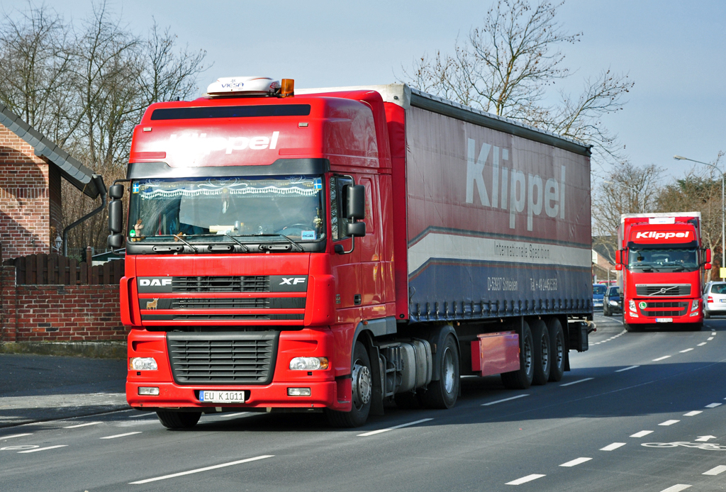 Ein DAF XF Sattelzug im Gewerbegebiet Sassnitz am 25.02.2012