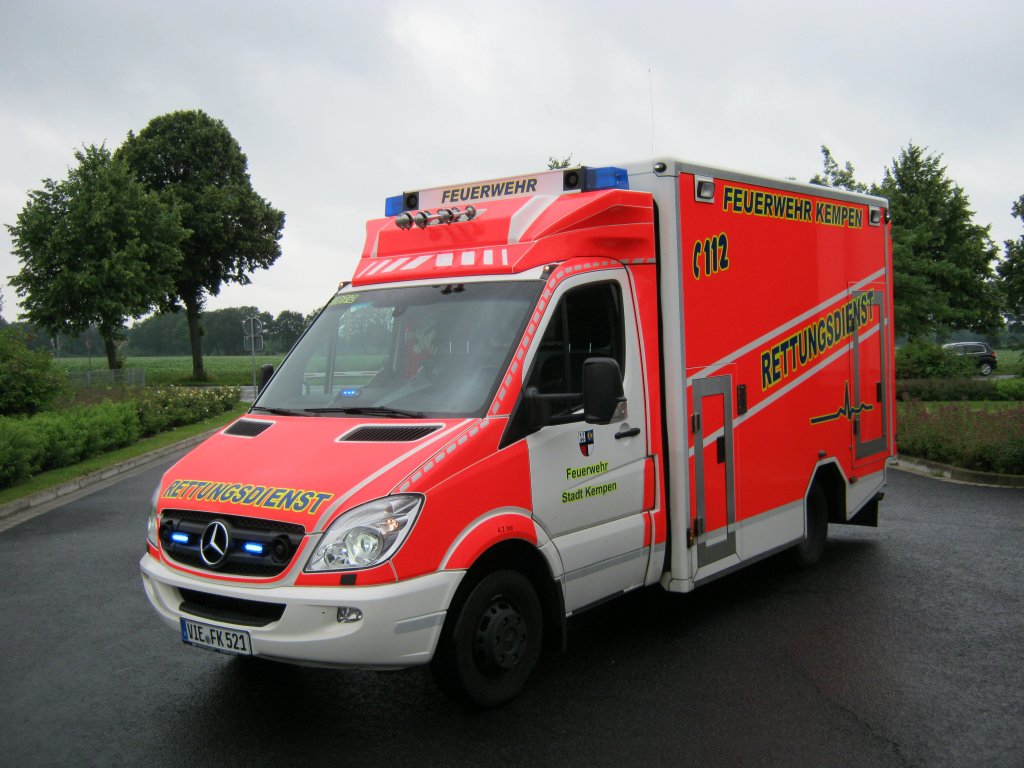 Rettungswagen (RTW) der Freiwilligen Feuerwehr der Stadt Kempen. Technische Daten: Mercedes-Benz Sprinter 519 CDi Ausbau durch die Firma GSF Automatikgetriebe Der RTW ist am 15.6.12 in Kempen bei einem Foto Termin bei der Rettungswache aufgenommen worden
