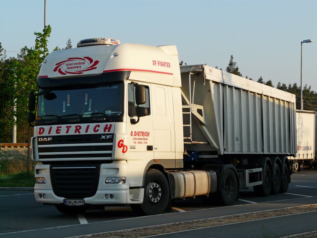 DAF XF 105.460 Kipper von "Dietrich" auf der Rastanlage Nürnberg/Feucht an der A9, 01.05.2012