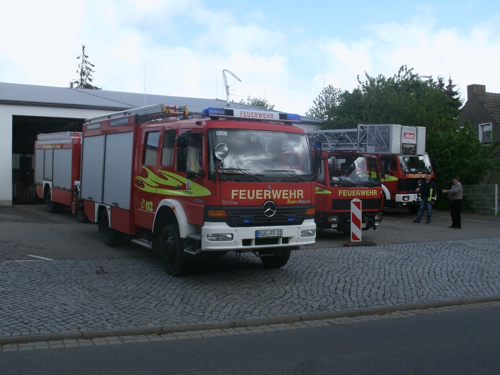 Einige Fahrzeuge von der Feuerwehr Bergen/Rügen standen am Morgen vom 17.Mai 2012 vor der Fahrzeughalle in Bergen/Rügen.