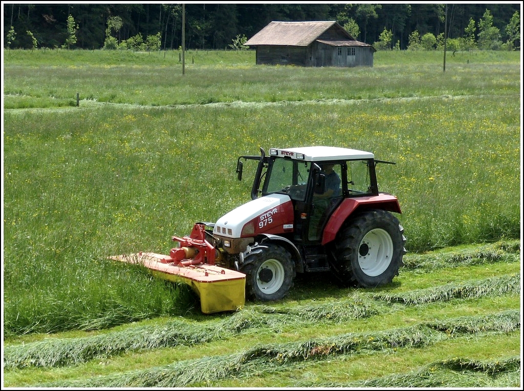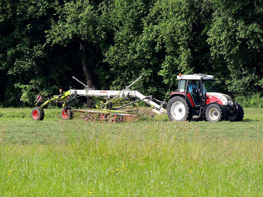 STEYR-9105MT bearbeitet mit Schwader CLAAS LINER 1750 eine Arbeitsbreite bis zu 8mtr.; 120603