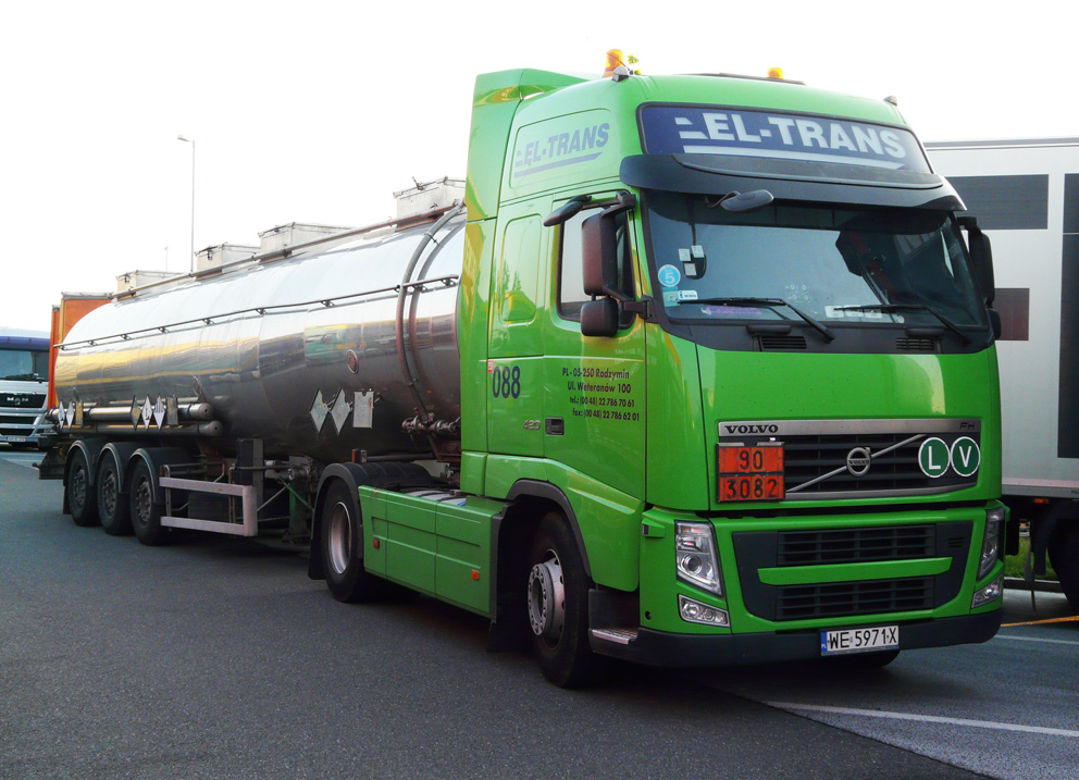 Volvo FH 420 Tanksattelzug von "EL-TRANS" aus Polen auf der Rastanlage Nürnberg/Feucht, 01.05.2012